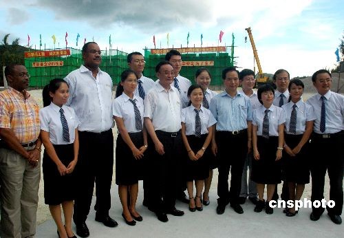 圖:吳邦國(guó)在塞舌爾接見中國(guó)青年志愿者
