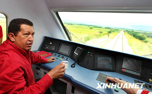 圖:委內(nèi)瑞拉總統(tǒng)參加中國(guó)火車試車活動(dòng)