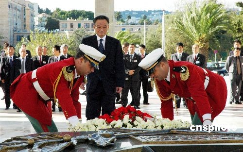 吳邦國向阿爾及利亞無名烈士紀念碑敬獻花圈