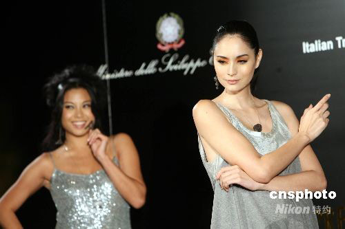 圖:靚模美腿展示青花瓷元素時尚鞋秀