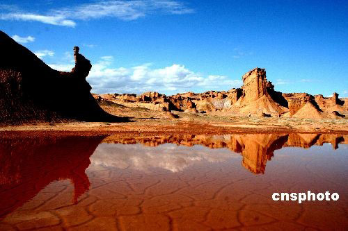 圖:新疆克孜爾魔鬼城雨后秋色迷人