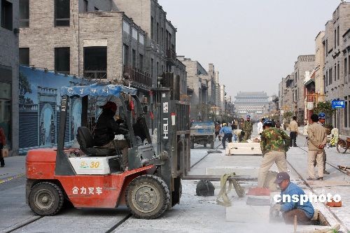 圖:前門大街進行路面保養(yǎng) 靜候"鐺鐺車"