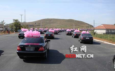 悍馬領(lǐng)隊百輛奔馳 看"史上最牛"婚車隊伍