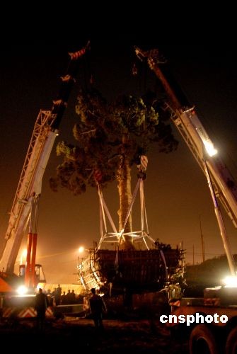 圖:鎮(zhèn)江一棵400年樹齡柏樹“搬家”