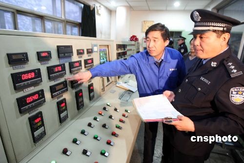圖:北京石景山警方檢查集中供熱系統(tǒng)安全