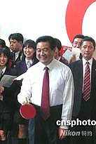 胡錦濤在早稻田大學打乒乓 與日本青年交流