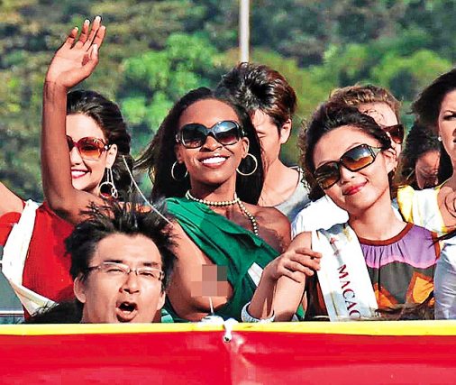 國際小姐游香港遇大風 贊比亞佳麗不慎露點(圖)