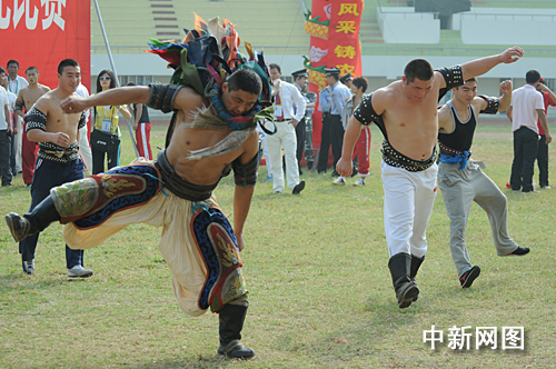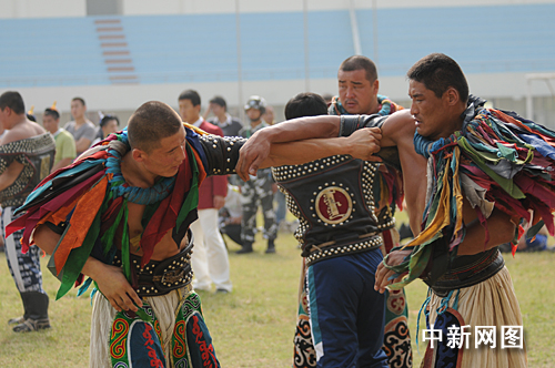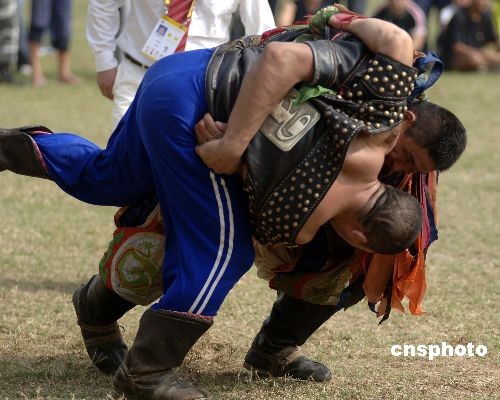 組圖:農(nóng)運(yùn)會"搏克"摔跤緊張激烈(2)