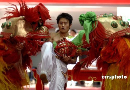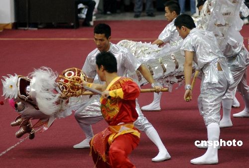 圖:第六屆農運會上演精彩紛呈的舞獅賽