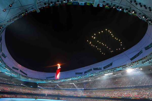 今夜盡情狂歡,煙花再次璀璨,歌聲匯成海洋。北京奧運會圣火緩緩熄滅,五環旗交與英倫。十六天,健兒們馳騁賽場屢創佳績;十六天,東道主盡心盡力無微不至;十六天,朋友們相聚言歡增進情誼;今宵,中國贏得贊譽——“無與倫比”。