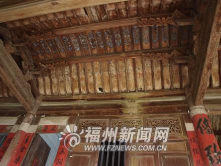 戴祥滋故居為四合院式民居,建于民國初期,系穿斗式木構架,面闊五間,大門前有大埕,正座建有前軒廊,后院有天井和單坡頂的回廊,正厝右側有附厝,左側50米處設有門樓和石構三層碉樓各一座。記者發現,該宅規模較大,建造裝修十分講究,屏門上方及軒廊、梁架等處均雕刻有精美的圖案,色彩明麗。