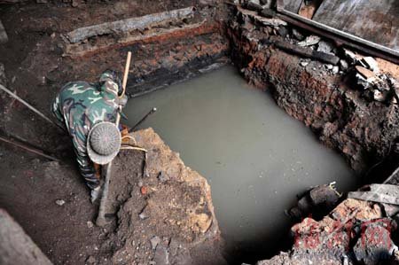 昨天(28日)上午,記者來到血池殿,已有十多位附近居民圍著重見天日的“血池”參觀。60歲的林長欽依伯告訴我們,當時工人剛剛挖開地面,看到水面,以為只是地下水道,并沒有在意,等到整個池塘挖出時,大伙兒才覺得可能有點兒名堂。