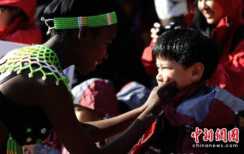 圖:世界杯中國球童親密接觸南非土著民族