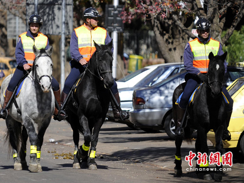 圖:南非騎警街頭巡邏保障世界杯安全