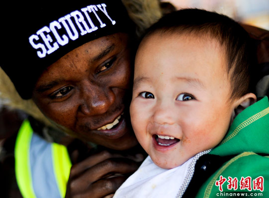圖:非洲保安呵護約翰內斯堡唐人街小華人