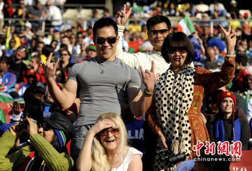 圖:中國家庭亮相南非世界杯看臺