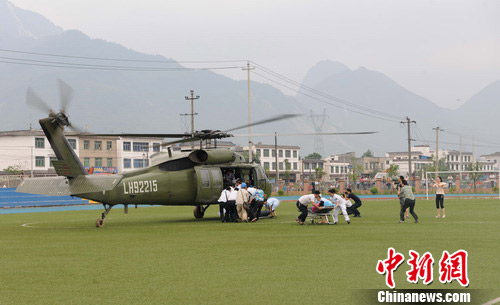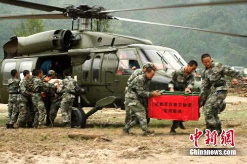圖:成都軍區某陸航團緊急馳援蒲江洪災區
