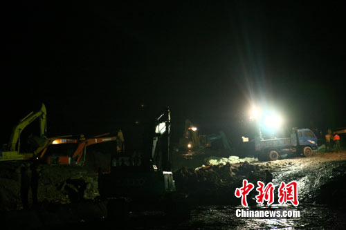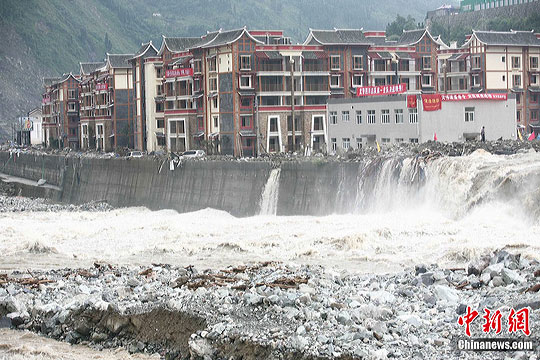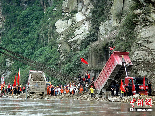 圖:映秀鎮堰塞體泄洪槽提前打通