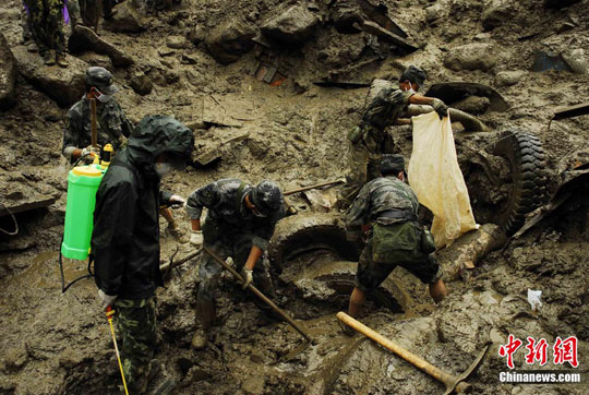 云南保山山體滑坡 “90”后救援官兵屢立功