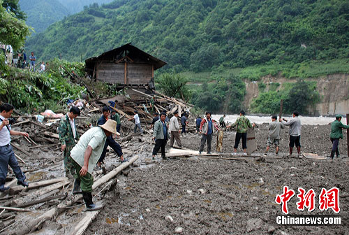 汶川泥石流:災區群眾連夜轉移安全地帶