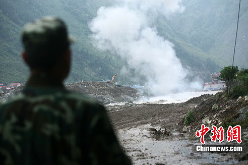 映秀鎮堰塞體已實施四次爆破 洪峰順利通過