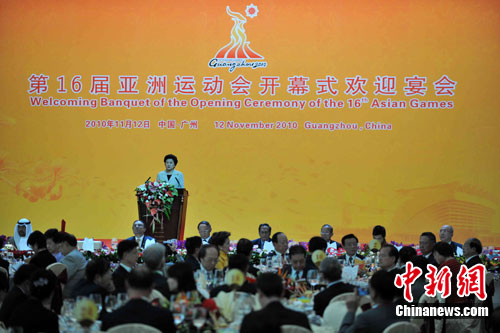 劉延?xùn)|歡迎各國(guó)嘉賓蒞臨廣州參加亞運(yùn)會(huì)開幕式