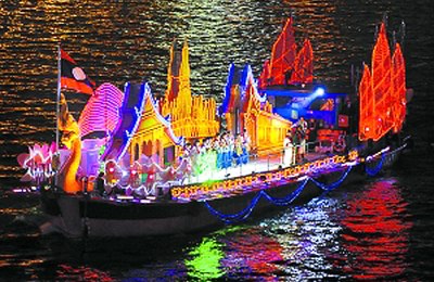圖:亞運(yùn)花船陸續(xù)抵達(dá)海心沙參加閉幕式