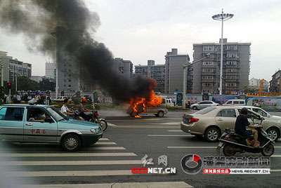 目擊者介紹,小車起明火后,頓時濃煙彌漫,一度影響交通。交警立即在現場指揮疏導,等待消防前來滅火。10分鐘后,火被熄滅,但是貨車也燒得“不成模樣”。