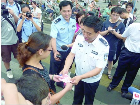 原來(lái),省會(huì)文明辦、石家莊市公安交管局決定出資10萬(wàn)元,在7月10日—7月21日期間,以宣傳倡導(dǎo)、志愿勸導(dǎo)、獎(jiǎng)懲引導(dǎo)為著眼點(diǎn),按照“不定時(shí)間、不定路口、不定對(duì)象”的原則,在全市范圍內(nèi)集中開展遵守交通法規(guī)獎(jiǎng)勵(lì)活動(dòng),對(duì)當(dāng)天搜索開始后在各路口尋找到的“第一位不闖紅燈的行人”、“第一位不闖紅燈的非機(jī)動(dòng)車騎乘人”進(jìn)行現(xiàn)場(chǎng)獎(jiǎng)勵(lì),每人一次獎(jiǎng)勵(lì)現(xiàn)金500元,以此激發(fā)和調(diào)動(dòng)廣大市民守法出行、文明出行、安全出行的積極性、自覺(jué)性。