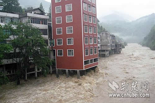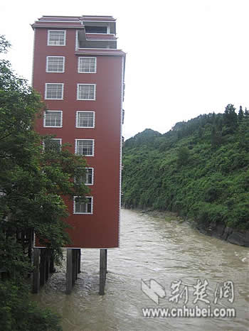 7月13日,有網(wǎng)友向荊楚網(wǎng)報料臺反映,恩施州鶴峰縣鐵爐鄉(xiāng)有人把房子建到了河道中,眼下正是主汛期,看著十分揪心。從該網(wǎng)友發(fā)來的照片上可以看到,一幢7層的樓房直接建在了河道當中,與周圍兩棟4層白色建筑形成了鮮明的對比,顯得十分突兀。照片里,湍急的河水急速地沖刷著這棟違建房的支柱,水流幾乎沖到了房子的底板上。