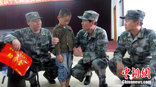 師長張寶軍說,救下男孩后,部隊忙于救人,與男孩失去聯絡。這段時間以來,張寶軍對男孩極為牽掛,他希望找到這個“光屁股”孤兒,了卻一樁心愿。8月22日上午10時,在旺起鎮小學,張寶軍終于見到了“光屁股”男孩張官博,他輕輕將男孩抱起,告訴他要堅強,要樂觀,要好好生活。“我會以個人的名義,一直資助你上大學,你記住爺爺的話,要堅強。”張寶軍眼睛濕潤,卻堅定的看著“光屁股”男孩。(完)