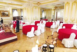 慈善晚宴的會場沒有想象中豪華,一位與會者介紹,會場和一些五星級的會場比較起來甚至稱得上“簡陋”,座椅等設(shè)施也一般,但現(xiàn)場風(fēng)格較為獨特,頗有歐洲中世紀(jì)的復(fù)古風(fēng),現(xiàn)場一共有7張桌子,每個桌子8個椅子,房頂上是有繪畫的穹頂。除了現(xiàn)場眾多的富豪外,會場最引人注目的就是雕塑了,有與會者看見其中一尊雕塑是“波蘭制造”,顯示會場與眾不同的貴族范兒。
