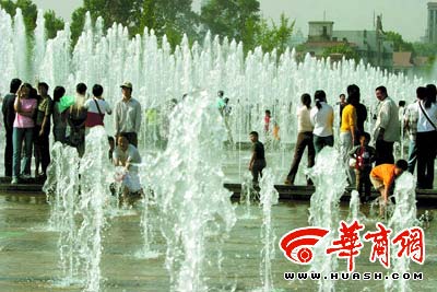 為了視覺(jué)震撼,要用到這么多白花花的自來(lái)水,您可能覺(jué)得心疼。其實(shí)不然,從節(jié)約考慮,噴泉所用的水全部是曲江水廠的退水。曲江水廠水源主要引自黑河,在滿足市民需要的前提下,還有部分水只能排放。這部分水不能飲用,但水質(zhì)完全滿足景觀用水需要。退水會(huì)被引到大唐芙蓉園中轉(zhuǎn)凈化,供應(yīng)該園和噴泉廣場(chǎng)使用。