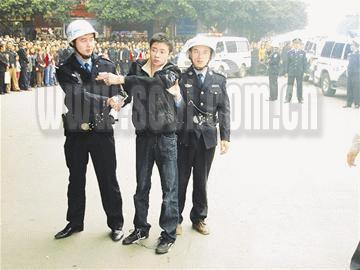 上午11時許,在雅安的兩名犯罪嫌疑人出現(xiàn)在市區(qū)西門汽車站外的路口,同行的還有4名年輕女子。當時,幾人正在路旁等車,周圍近距離內正好沒有行人經過。見抓捕時機成熟,4名早已蹲守在此的便衣民警突然沖向兩名犯罪嫌疑人。兩人還沒來得及作出反應,就被民警按倒在地。回過神來后,他們拼命反抗。幾分鐘后,兩人被民警制服。