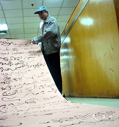 為紀念秋收起義和井岡山革命根據地創建80周年,近日,我省書法家徐云鵬先生用他獨創的“飛白”書體,以54首毛主席詩詞為內容,創作了一幅寬0.7米、長208米的書法長卷,這在我省書法長卷創作中尚屬首次。
