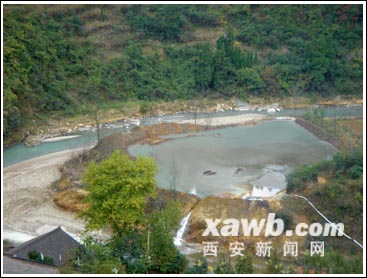 10月29日,記者在寧強縣代家壩鎮采訪時,驅車沿黑水河自東向西逆流而上,一路上看到,黑水河邊沉淀著一些廢棄的礦渣。群眾說,這都是同強礦業有限責任公司(簡稱同強公司)排放的礦渣。在距代家壩鎮約1公里處能看到位于該鎮王家灣村的同強公司,拉運礦石的卡車來回穿梭,廠區上空煙塵飛揚,生產車間里機器轟鳴聲不絕于耳。記者看到,一根水桶粗細的白色塑料管從公司后山直泄而下,渾濁的污水在沉淀庫內稍作停留后,就直接排入黑水河,河水頓時變得渾濁起來。黑水河是沿河兩岸數萬群眾的水源河。