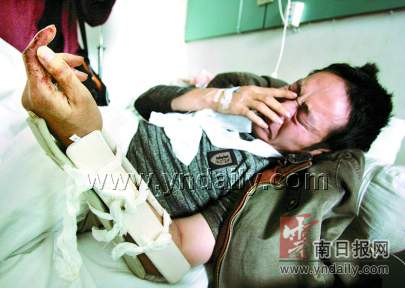 記者看到李君鐘時,他正準備做手術,主治醫生告訴記者,李君鐘多處軟組織挫傷,頭部受傷縫了7針,左臂骨折,傷情跡象表明,肯定是嚴重的外力所致。“我怎么這么倒霉啊!因為找不到自己的車,就挨了一頓打!”說起當晚的情形,李君鐘忍不住淚流滿面,他說,當晚,因為和朋友多喝了幾杯,記得自己的車停在錦苑花園小區門口,但可能是喝多了,到門口一看,卻怎么也找不著車了,難道車被偷了?他趕緊四處找車,不知不覺就進了小區。剛進小區,突然有幾名保安跑過來,二話沒說就開始打他……