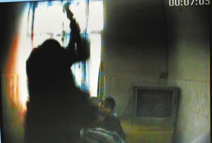 我馬上站起來,一只手跟他搏斗,一只手打開了防盜門,當(dāng)時的動靜很大,外面接應(yīng)的同事也都聽見了,他們砸門砸了五六下,門開了,沖進(jìn)來就控制了周某。