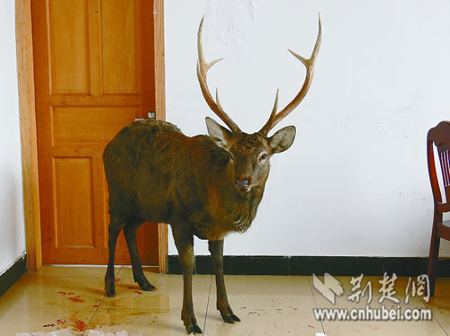 18日下午1點半,位于神農(nóng)架牛場坪的滑雪場辦公室突然闖進一個不速之客,一頭重約100公斤的大型鹿科動物因逃避猛獸追捕向人類求助。