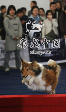 在比賽場不遠處,還舉辦了狗狗“敏捷秀”,看看哪只狗狗在爬坡、穿洞、跳高等各方面的技能訓練最好。由12只狗組成的參賽隊伍,一會兒上坡,一會兒跳高,引來眾人的喝彩。特別是狗按照指定路線送報紙、跳舞等才藝表演,讓人大開眼界。