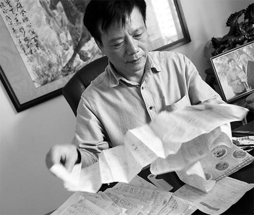 由于不會用電腦打字,邢詒前只能將信手寫在紙上,然后再將草稿拿到樓下的打字店打印。因為是想表達自己最真實的想法,當正兒八經坐下來對著信紙的時候,邢詒前倒寫不出來了。經常是吃飯、走路或者抽煙、睡覺的時候,突然間來了 “真感覺”,就趕快將這種感覺寫下來。與這種寫信方式相吻合的是,記者看到邢詒前寫給曾蔭權行政長官的信的一大沓草稿,有的是廣告單的紙,有的是傳真紙,有的包裝紙,還有的是吃飯時墊桌子的紙。每寫完一段,就到打字店去打一段,如此反復,一封信寫了20多天才完。