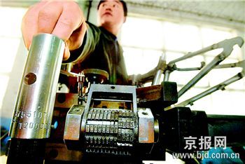 今天上午,北京自行車刻制編碼現場會在石景山舉行。在一家專門生產運動型自行車的企業廠房內,記者看到,工人正使用刻碼機往自行車的前臉管或三通管上刻制15位的全國統一編碼。因15位編碼較長,所以均刻制成雙層。企業負責人告訴記者,編碼的前4位是向編碼管理部門申請的企業代碼,后面則是車種、流水線等號碼。
