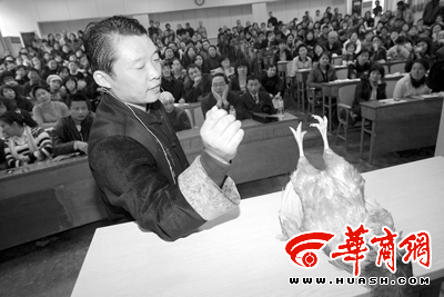 “貓最怕什么?”“老鼠”!這不是在玩腦筋急轉(zhuǎn)彎;一名懸空躺下的男子膝蓋上站著一位成年人,這也不是在練硬氣功;眾目睽睽下,通過(guò)“交流”,一只正在奮力掙扎的母雞很快安靜下來(lái),這更不是因?yàn)樗苈?tīng)懂人話(huà)。這是昨日在西安第四軍醫(yī)大學(xué)舉行的一場(chǎng)“自然催眠療法”公益演示會(huì)上,聽(tīng)眾進(jìn)行的一次“催眠之旅”。