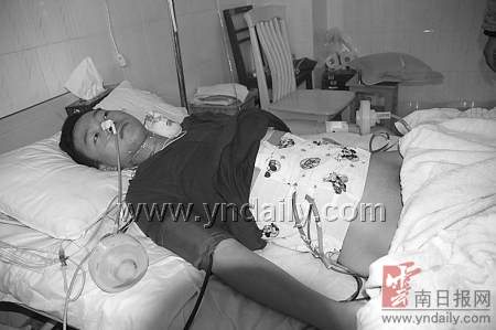 據(jù)主治醫(yī)生張新有介紹,病人剛送醫(yī)院時,駱文龍已經(jīng)有了休克癥狀。手術(shù)過程中,臨滄市第一人民醫(yī)院也派出專家組往鎮(zhèn)康趕,由于病人失血過多,一度出現(xiàn)血漿短缺,等到市里專家組到了以后,馬上對病人補充了血漿,手術(shù)直到第二天上午才做完。張醫(yī)生說,手術(shù)后發(fā)現(xiàn),子彈從駱文龍右肋下穿入,從右腰側(cè)出來,他的肝右翼、膽囊底、胃竇部前后壁、十二指腸水平部都出現(xiàn)破裂。手術(shù)以后主要是防止他的十二指腸修補處發(fā)炎漏液癥狀。(劉自學(xué) 攝影報道)