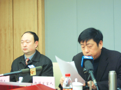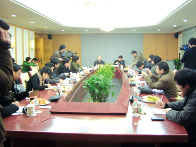 記者11日從新聞界同行朋友處得知了這個(gè)新聞發(fā)布會(huì),不請(qǐng)自至。與發(fā)布會(huì)的草草結(jié)束類似,記者差點(diǎn)沒(méi)有進(jìn)到會(huì)場(chǎng)。樓下負(fù)責(zé)簽到的人員說(shuō):我們沒(méi)有請(qǐng)你。幸遇媒體同行及省委宣傳部一位干部的“說(shuō)情”,終于進(jìn)到會(huì)場(chǎng)。記者還被人囑咐:要按通稿報(bào)道,因?yàn)楹枚囝I(lǐng)導(dǎo)都批了字。