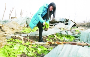 昨日下午,同達生態園內已經停止營業,園區前后門均已被封鎖。園內數十間種植蔬菜和花卉的溫室被推倒,菜葉和花枝四處散落。