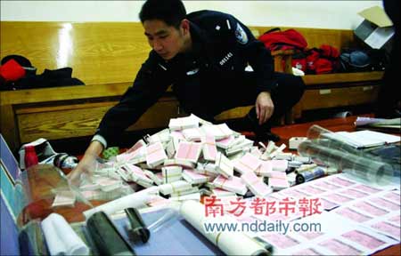 1月9日,春運(yùn)尚未開始。中午時(shí)分,正在廣州火車站準(zhǔn)備登上火車回重慶的一名男子,卻被拒絕在了進(jìn)站口。“假票!”該男子很生氣,當(dāng)即跑到廣州火車站派出所報(bào)案室,手持他花100多元買的“火車票”告訴民警說,這票是他在深圳龍崗區(qū)一家藥店購買的!罢婕倨!”值班民警甄別重慶旅客手中的假票后,初步判定案情緊急,當(dāng)即向上級(jí)匯報(bào)。當(dāng)天,廣州鐵路公安處指派其刑警支隊(duì)廣州站大隊(duì),成立專案組。