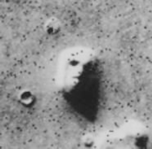 “火星之臉”照片上世紀(jì)70年代曾在科學(xué)界和科幻迷中引起了巨大的激動,因為“火星之臉”看起來就像是一顆抬頭仰望夜空的碩大人頭。不過后來拍到的新火星照片證實,“火星之臉”只不過是一塊普通的火星巖石而已,只是由于特殊拍攝角度的光學(xué)錯覺才形成了人臉形狀。