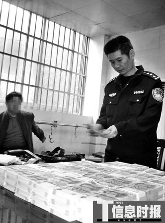 1月16日早上8時(shí)許,正在廣州火車站進(jìn)站大門口負(fù)責(zé)行李安檢的老譚忽然發(fā)現(xiàn),安檢儀中顯示一個(gè)旅行袋內(nèi)裝滿成疊物品,形狀非常像人民幣!經(jīng)驗(yàn)豐富的他不動(dòng)聲色,向旁邊值勤的同事使了個(gè)眼色。幾名民警立即兵分六路,將安檢儀附近旅客控制。隨后,民警拉開袋子拉鏈,箱內(nèi)物品讓現(xiàn)場民警全部大吃一驚:里面除了一疊疊壘得整整齊齊的“人民幣”百元大鈔外,再無其它物品!