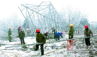 由于受強(qiáng)冷空氣影響,連日來(lái),昭通大部分地區(qū)持續(xù)普降凍雨、大雪,致使昭通電網(wǎng)遭遇10年不遇的覆冰自然災(zāi)害,造成昭通大面積停電,并嚴(yán)重威脅著內(nèi)昆線鐵路運(yùn)行和溪洛渡電站施工用電。目前,威信、鎮(zhèn)雄、鹽津3縣已經(jīng)與云南電網(wǎng)脫離,孤網(wǎng)運(yùn)行;鹽津紅原電石廠、水富金明化工廠已被迫停產(chǎn)。